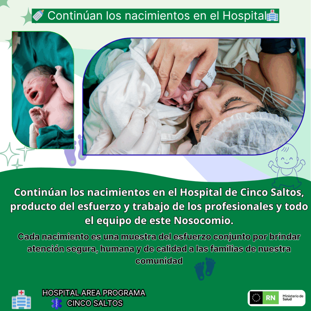 Con gran alegría compartimos que siguen produciéndose nuevos nacimientos en nuestro hospital, fruto del compromiso, la dedicación y el trabajo en equipo de nuestros profesionales y de todo el personal de este nosocomio.