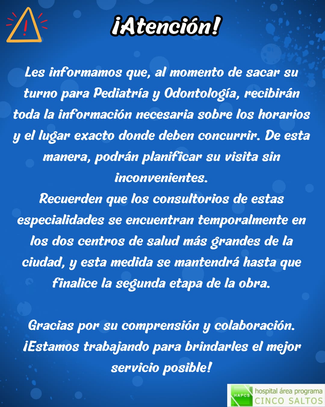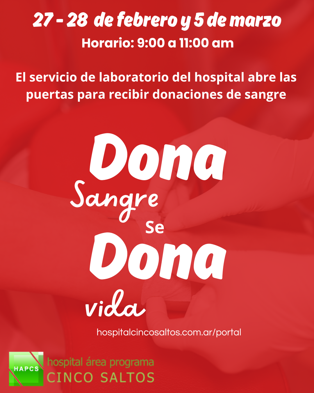 El servicio de laboratorio del hospital abre las puertas para recibir donaciones de sangre. Si tienes el deseo de ayudar, te esperamos en los siguientes días:
