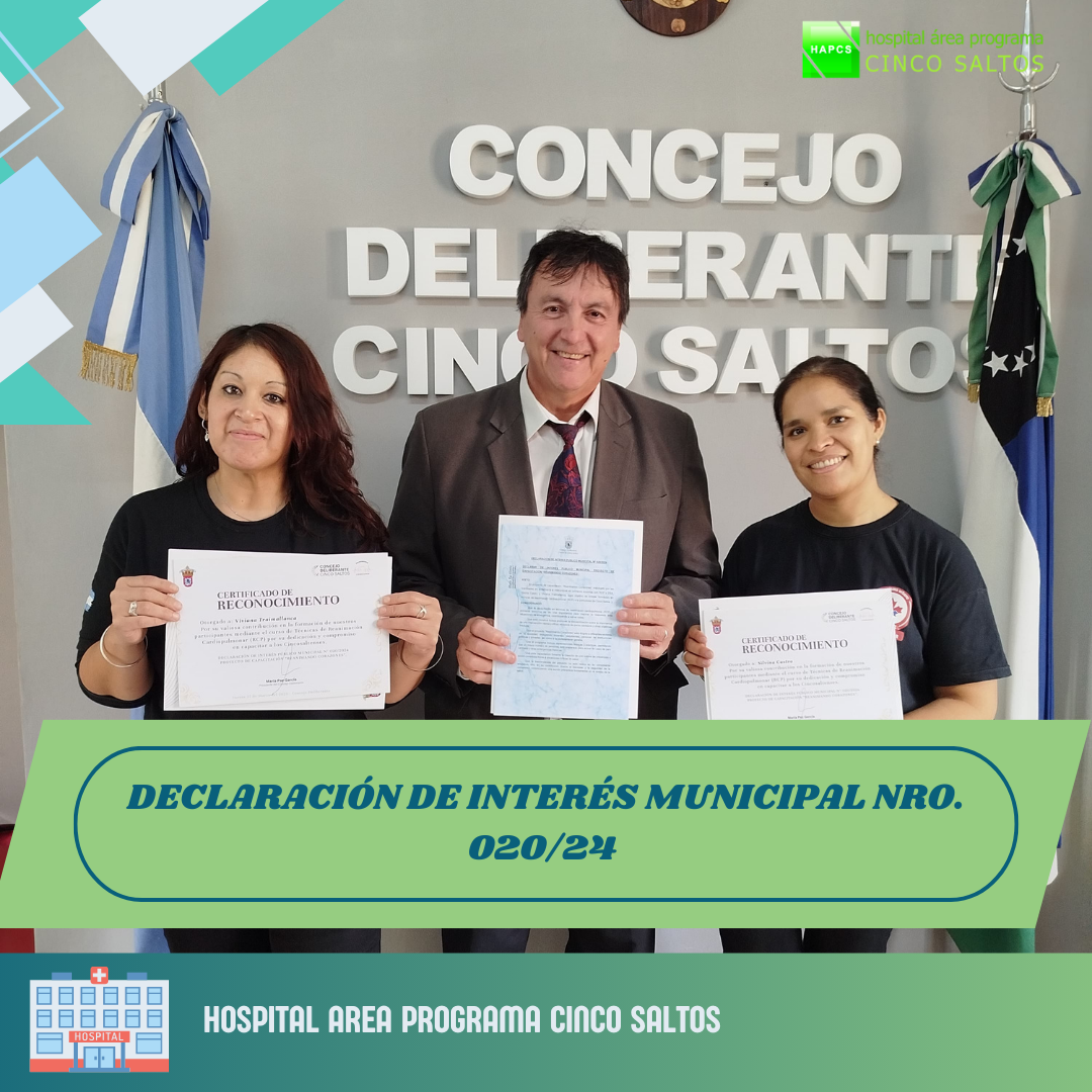 Nos complace anunciar que el proyecto «REANIMANDO CORAZONES», presentado por las Licenciadas en Enfermería Silvina Castro y Viviana Traimallanca, ha sido declarado de interés municipal. Este proyecto, impulsado desde el Hospital Área Programa Cinco Saltos, tiene como objetivo mejorar la calidad de atención y salvar vidas, brindando capacitación en técnicas de reanimación cardiopulmonar (RCP) a la comunidad.