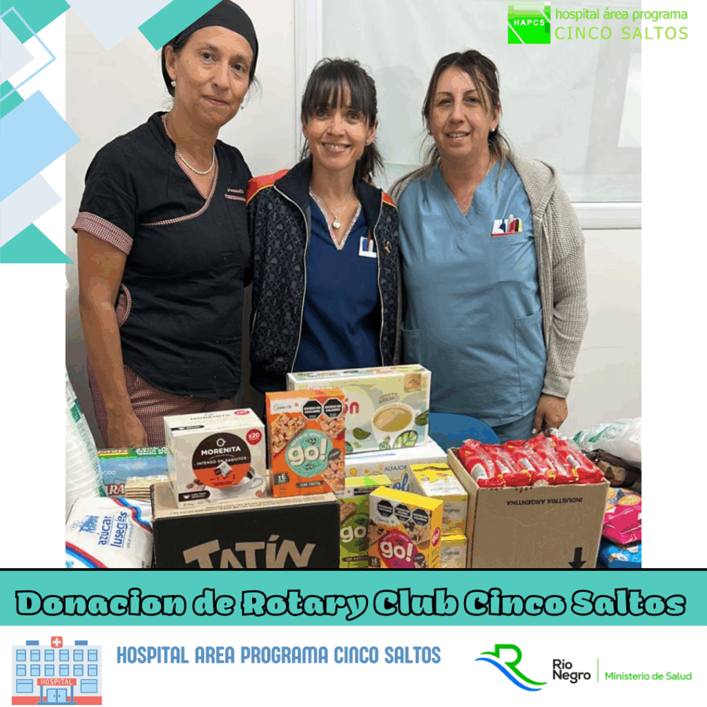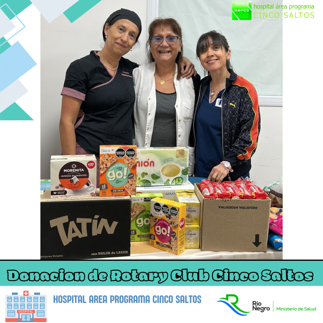 Hoy recibimos con gran alegría a la Dra. Santucho y al Rotary Club Cinco Saltos, quienes realizaron una valiosa donación destinada a los refrigerios de las personas que donan sangre en nuestro hospital.